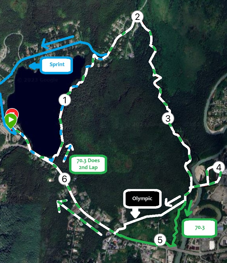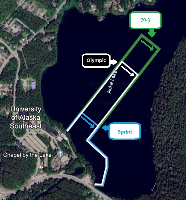 Cyclists will all head towards the Mendenhall Glacier Visitor Center before turning around to head back towards UAS. The Sprint cyclists turn back in while Olympic and 70.3 participants head “out the road” from the Auke Bay traffic circle. The Olympic turn will be at Tee Harbor while the Long continues out to Sunshine Cove.